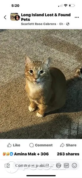 Orange with white chest belly and paws. He is very sweet but also shy. If you see him he will most likely comply with being picked up. He loves food and treats he will come to that.