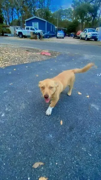The female puppy is about 4 months old and very energetic. She is a blondish tan color and a mixed breed of different dogs, unsure what. She is very friendly and playful. She gets along well with other dogs and is gentle and sociable. She's just needing someone to adopt her and or foster her