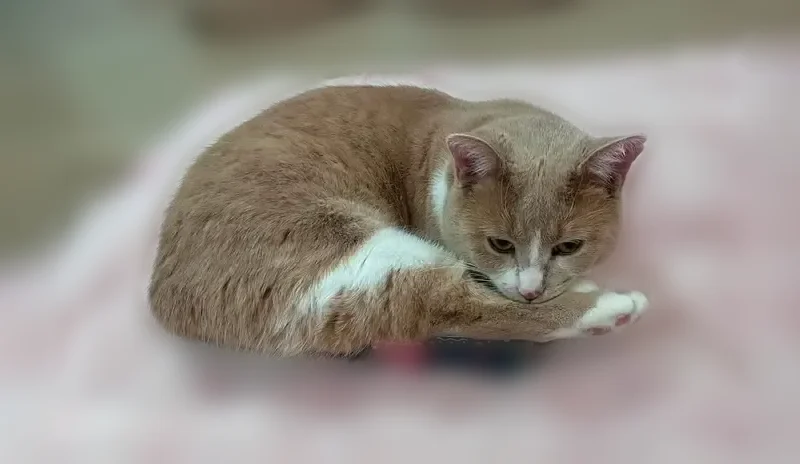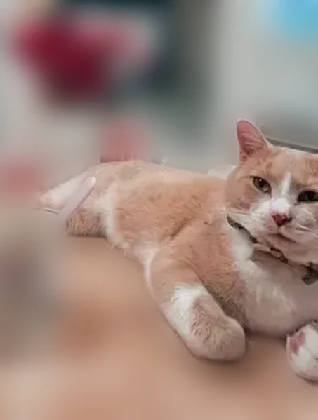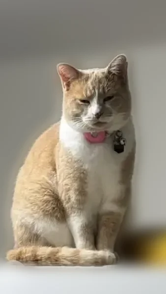 Gender: male Neutered Chipped Colour: Orange/Buff and White Has a little cut mark on left ear Very friendly Food motivated