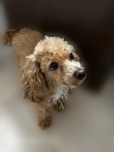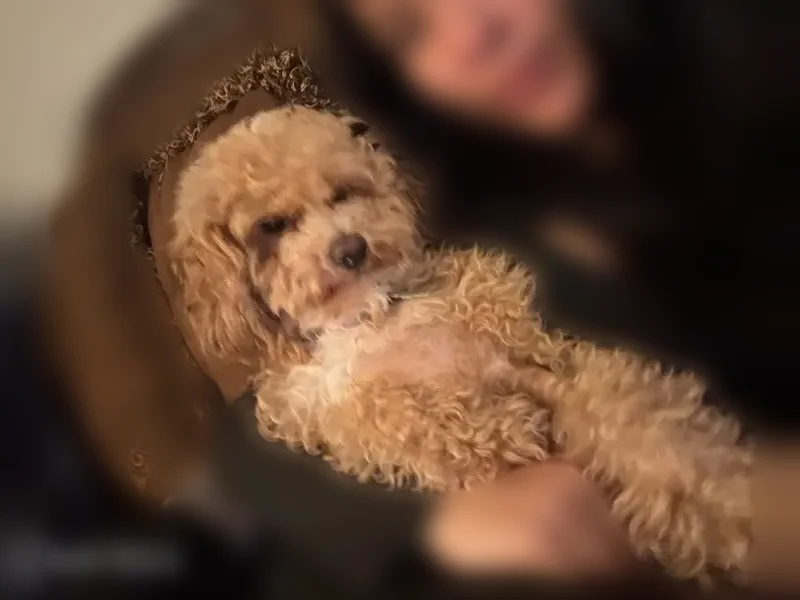 Brown/beige color, she loves treats, she does bark at other dogs, she’s playful but with sass. She doesn’t bite at all!