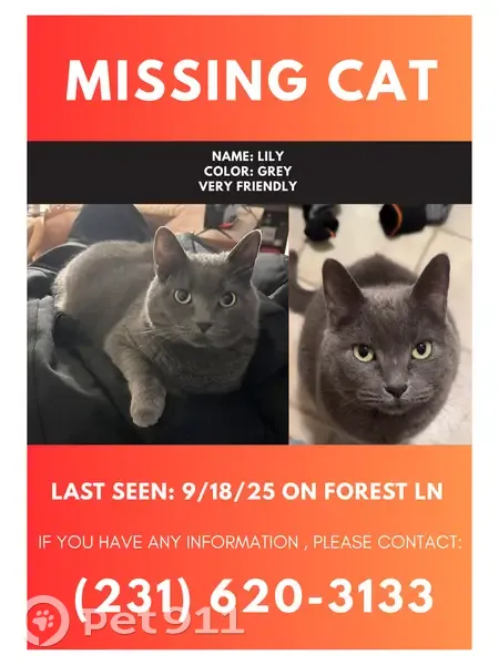Missing cat Traverse City, photo: Lost Chunky Grey Cat on West River Rd