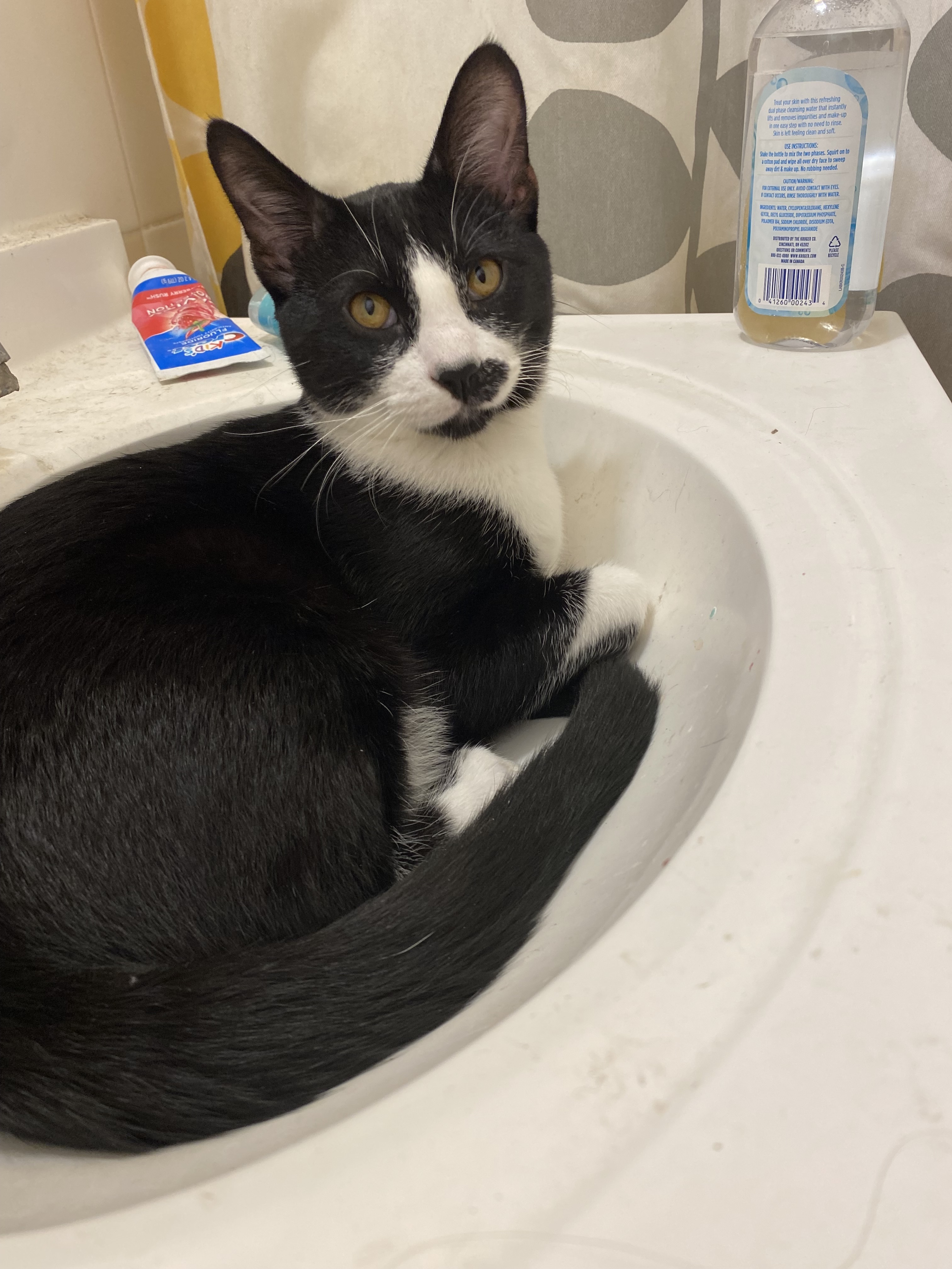Hello everyone, My landlord was working on my home about 4–5 days ago and accidentally left my back door open while I was at work. My cat ran out and has not returned since. His name is Skunk, also known as Skunkie. He is very friendly.