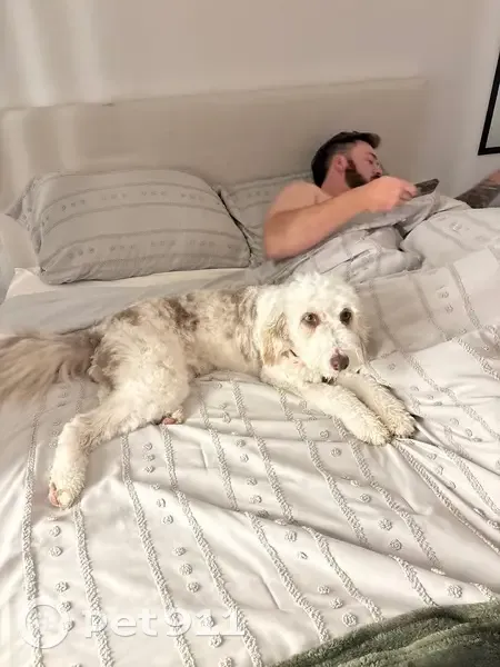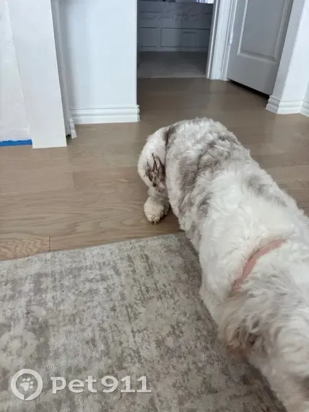 Her coat is white with brown and grey spots. She was wearing pink colour with a gold tag her name on it and our phone numbers. She’s friendly once you gain her trust. If you approach her too quickly or she doesn’t know you, she will run away so please stay close observe and give us a call. 4303339727 or 2147992136. She has brown nose with a lot of brown spots and her eyes are green and blue, especially one of them.