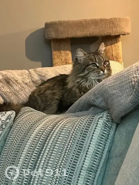 Snuck out of the house during home renovations. She is very scared of strangers and loud noises. Nala is a very petite Maine coon, not larger in stature like most. Typical fluffy tail, furry ears, white fur under chin, darker fur in her back blending into browns and greys. She has an extra toe on all four paws. Given her skiddish personality, it’s likely she is hiding somewhere. She doesn’t typically come when called. She’s very demanding at 9am and 6pm for her daily treats. There are about 3 outdoor cats in our neighborhood that have pretty much dominated the area. We’re concerned their presence is keeping her from coming home.