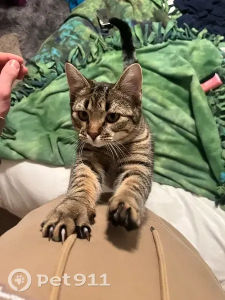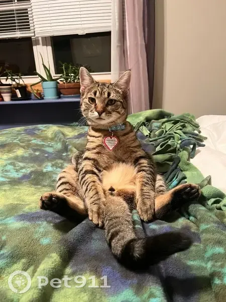 Cooper is a brown tabby with an orangey undercoat. Small tuft of hair stands up on his head. Small heart in his patterning on top of his head. He is a sweetie but would most likely not approach. He can easily be bribed with a bag or treats or wet food though. He does not like cars or garage doors or anything else that makes too much noise.
