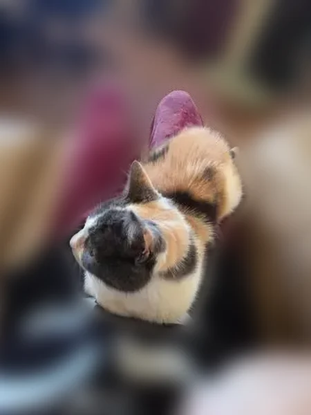 Pastel Calico, has a little spot missing on her right ear