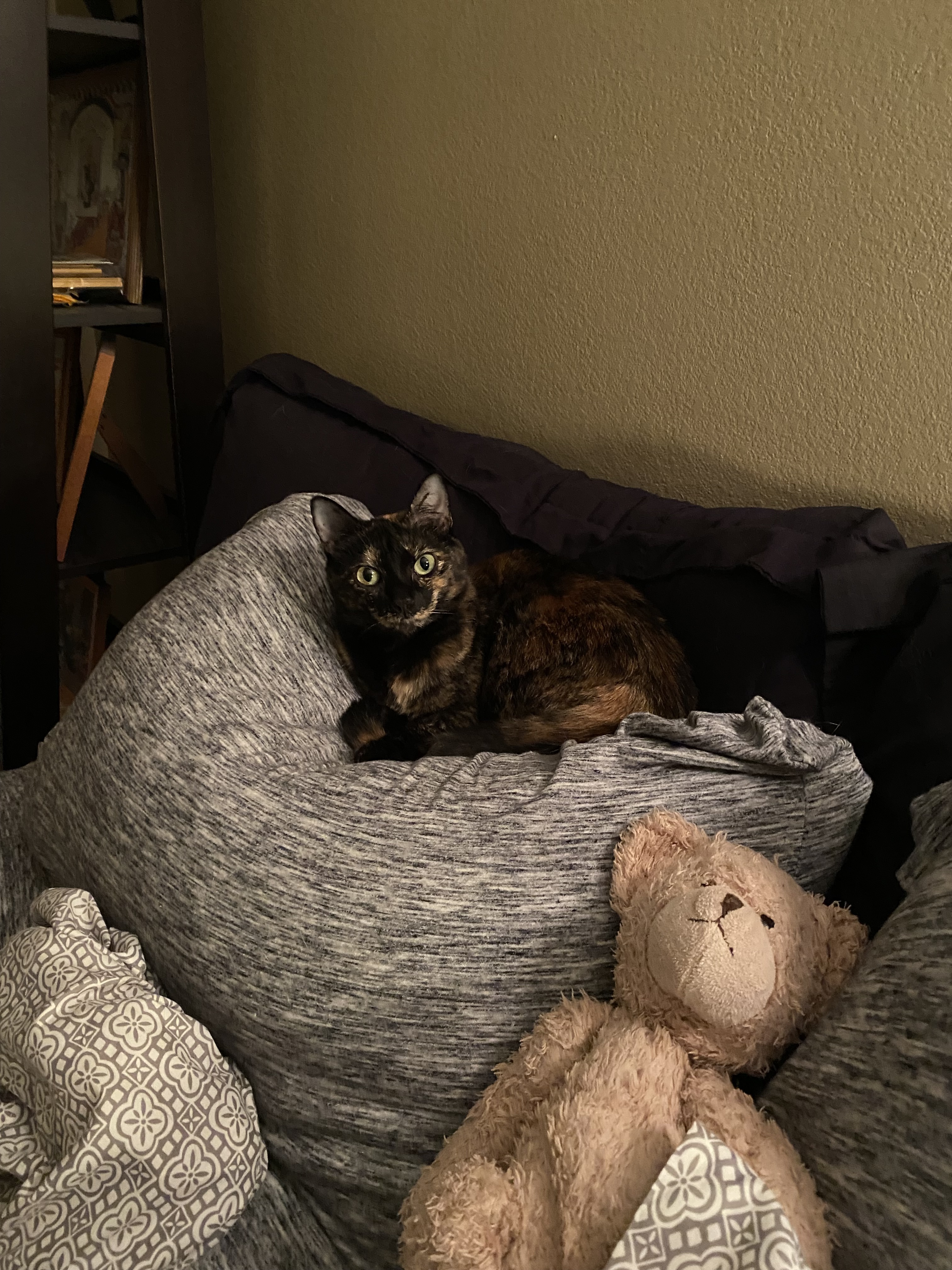 Bonita is a black and gold 6yo female Tortie. She is spayed and microchipped, but no collar. She is a very skittish indoor only cat that accidently escaped outdoors after a smoke alarm went off. First time out. Please help. We love and miss her very much.