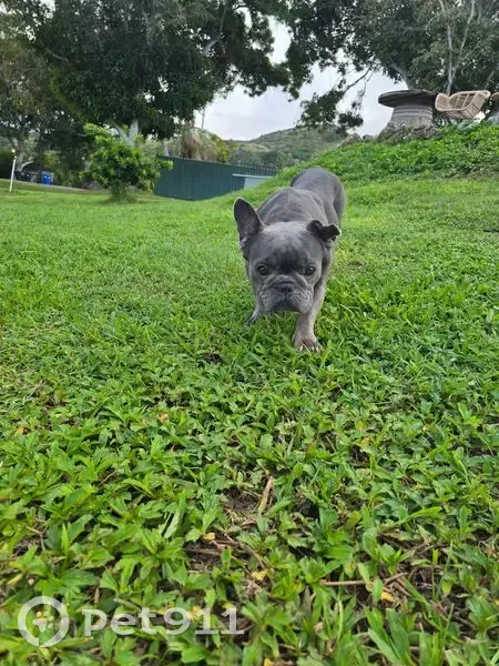 Grey female frenchie she has her left ear kind of half down and looks like mites in her ears also gave her a bath and she has been fed and is in good spirits please call me directly 808-478-0392 if owner is not found by 3/3 I will be dropping her off at the humane society in honolulu