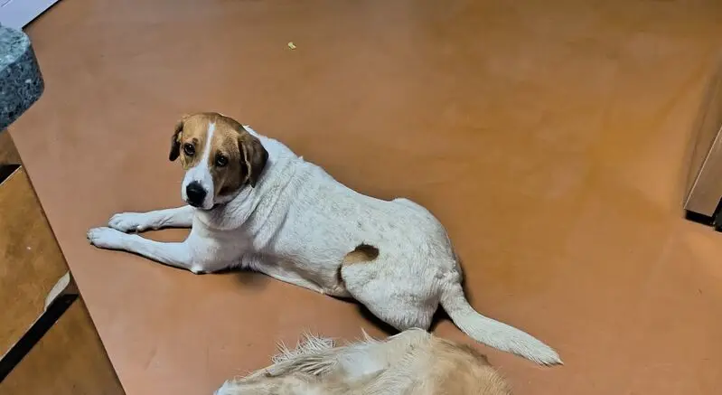 Based on microchip her name is Penny and she is 3 years old. She was adopted from Guilford county animal shelter on September. She is yellow with black on back and tail. Very sweet