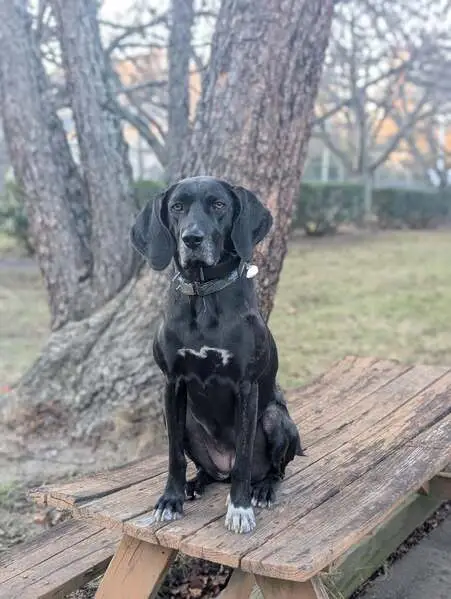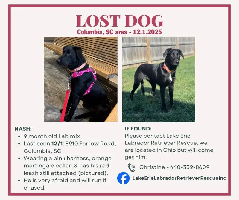 Female black lab mix found in intersection at lake joy rd and feagin mill. Collar with AirTag. Changed AirTag battery and no tag info found. Very sweet but hungry and hyper!