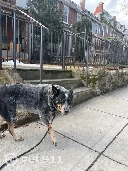 Australian cattle dog, medium size. She ran off while on a walk in Rock Creek Park. She can be shy and might run away if chased or yelled at - but she is also very sweet!