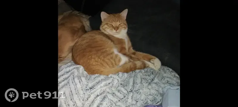 He is orange on top except for a strip on a hind leg and all 4 paws. Under he has white on chest and a corset almost of orange against white with a orange spot between his front legs under him. He's very sweet but I know he's very scared. He's neutered.