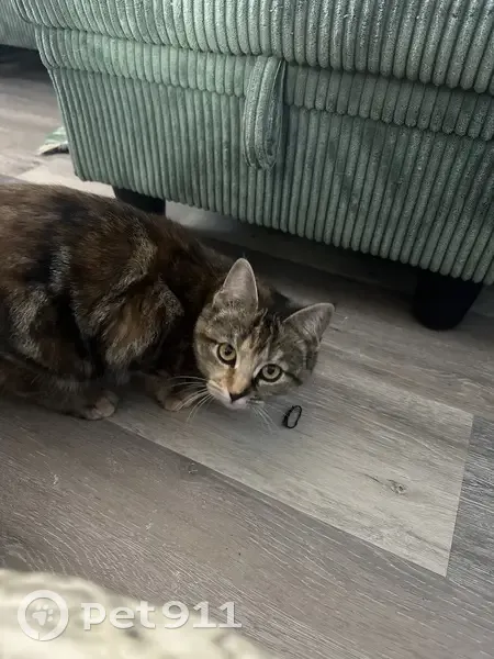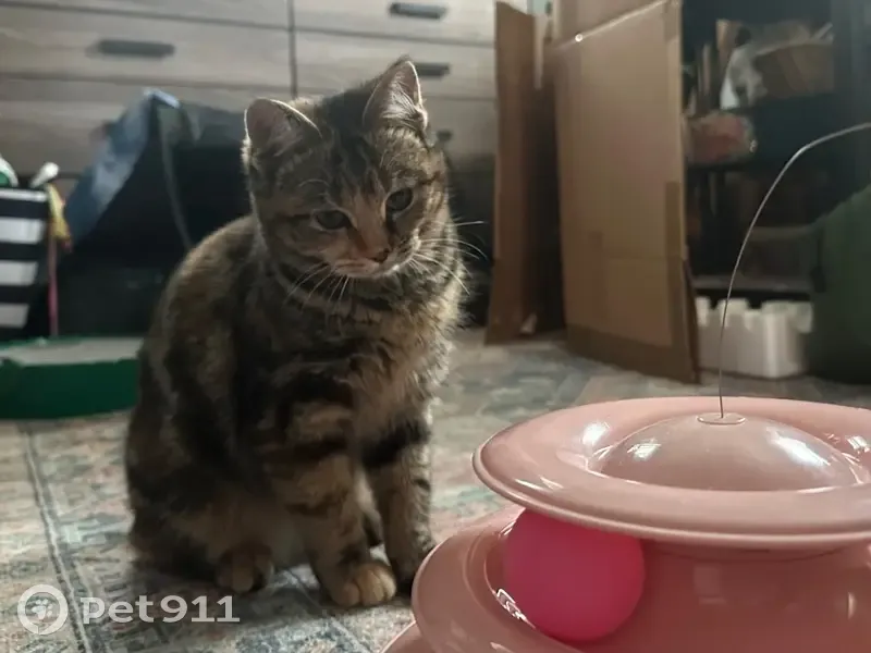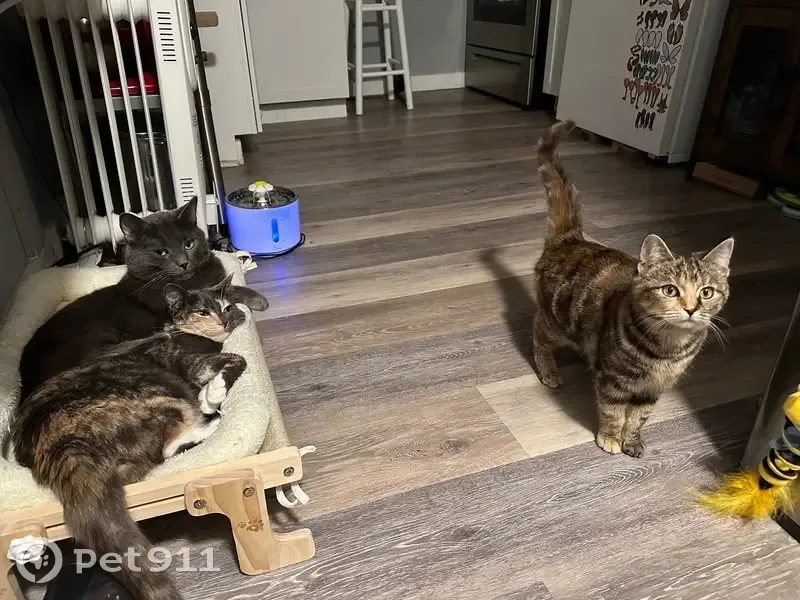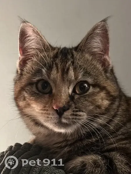 She is on the smaller size, only about 6 months old. She has a mix of gray, white, brown, black, and auburn fur. Her nose is half black and half pink. She is pretty skittish, but super sweet and loving. She may or may not come when called. She sprinted into my backyard and under a shed, but I think she went out through the back and under the neighbors fence and I don’t know where she went from there.