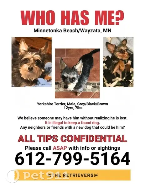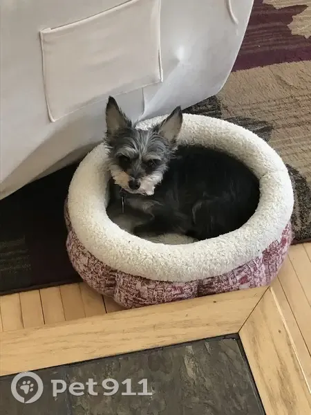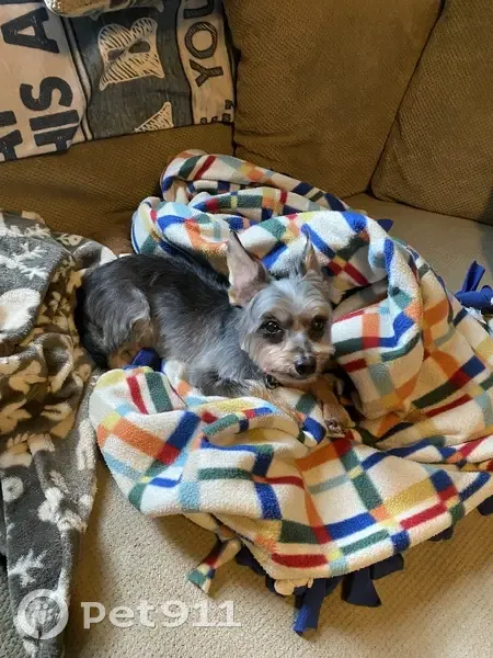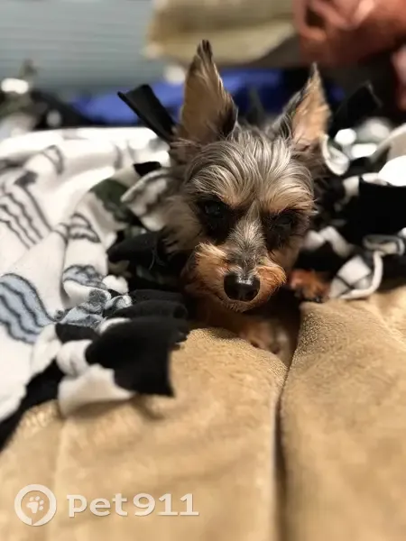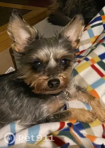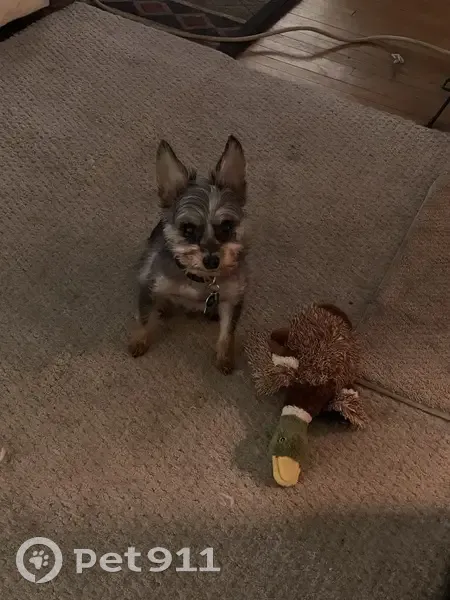 Peanut is a black/gray/tan yorkie terrier. 7lbs and 12 years old. He looks younger than he is. Peanut has a small black collar with tags. Male/neutered. Peanut was recently groomed so his hair was short but it does get longer over time so appearance can change. Peanut wandered off at 9pm on 10/30 during his last outing before bedtime. He has a tendency to follow scent trails, and likely followed one until he was out of earshot and disoriented. Peanut has a fatty cyst/lump on his lower chest and a raised mole on his inside right ear.