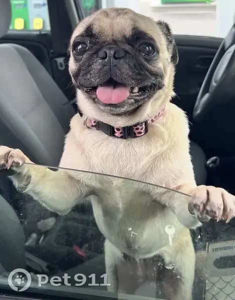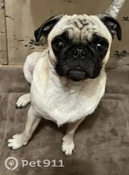 Bailey is a fawn pug, she is smaller than a typical pug. She and another one of our dogs were let out to potty, when it was time for them to come back in they both were gone in less than 15 mins. This is not typical behavior as they usually do not run off. Both dogs were missing for roughly an hour until the male dog returned home, but Bailey is still missing. We have looked everywhere near and far, and still have not found her. She did not have a collar on. She is microchipped. She has a seizure disorder and has to have her medication.