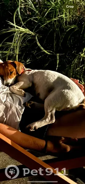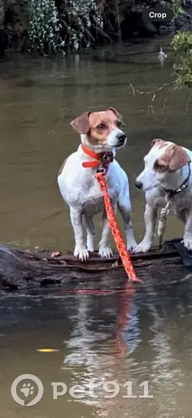 She has a small white arrow on the top of her head. She has also previously had puppies. If she still has a collar on it would be orange, she tends to be nervous around people she doesn’t know!