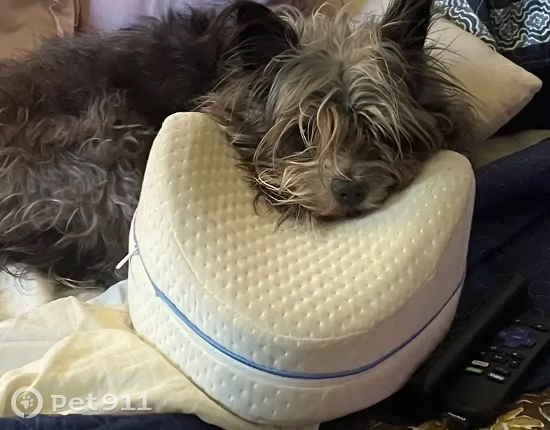 Black and white Yorkie mix, 13 lbs, recent haircut, 13 years old, cataracts. She must have slipped by me when I opened the door and I did not see her go out. I thought she was hiding from the rain and I didn’t know to go look for her. She’s only run off once in 11 years and she came back in a couple of hours. She is really missed.
