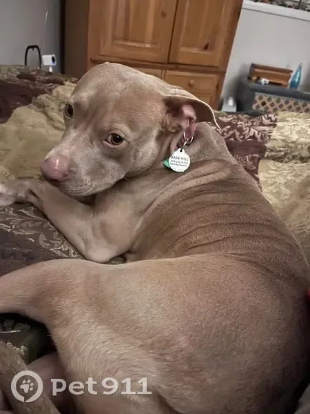 Brown with four white paws, not aggressive. She was wearing a green collar with tags with her name on it and phone number. Last seen playing in front yard with her friend Bailey. Her mommy misses her very much. She belongs to my niece Dana. If you have seen her, please contact the number on the caller. There is a reward.