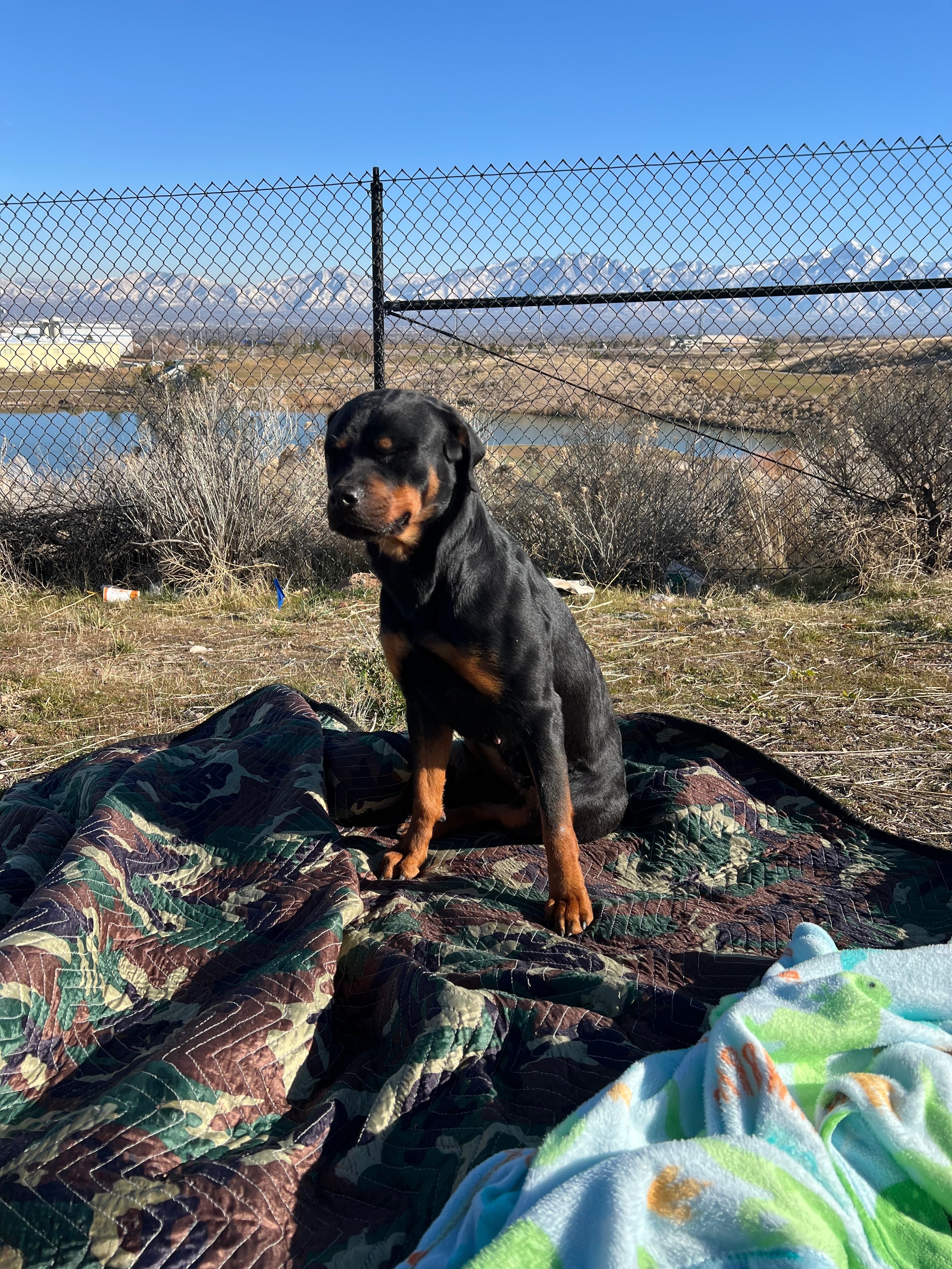 Female Rottweiler, looked young Clipped nails, looked nutritionally healthy Injury to hind legs/pelvis Gentle, docile Ate food and drank water No tags/collar or chip found