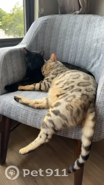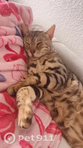 We were traveling to CA when we stoped at a Pizza Hut where he escaped from the car. Noori is boy neutered bengal light brown with dark black Spots/ Rosetta looks like a tiger. He is 2.5y old.