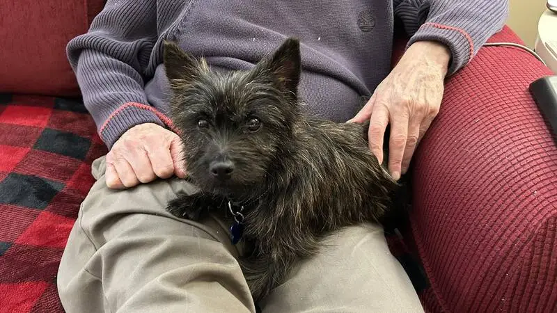 Dishwasher technician found on the side of the road between Shell Lake and Ponsford on his way our place on Bad Medicine Lake. Dog appears is dirty and panting, but clearly happy to see humans and accept care.