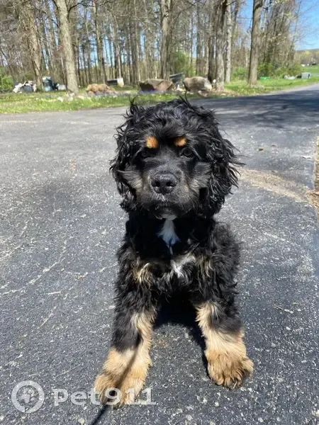 Curly hair fluffy hair, Loves people, Usually listens to his name but also likes to run, he has a camo collar on but no tag. He is super friendly and always wants to play with everyone and all animals.