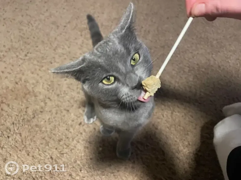 Russian Blue Cat around 8 months , raccoon appearing tail, very friendly