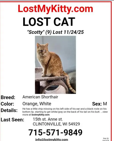 Cat lost/left behind near Cowan Lake. Hanging around Beechwood Acres Camping Resort on the South side of the lake. He looks well taken after, has a blue collar with a bell, keeps going up to people wanting affection. Around 3-4 years old, no chip, soft cream orange. Unsure if he was left behind or lost.