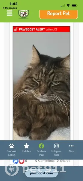 Oliver is my friend Catherine he is an outdoor cat and the best friend and the love of her life. He is an outdoor cat that has loved his life in the woods for 10 years but always comes home when he is called or just because he loves his mommy so much. Please check ring cameras. Repost. I’ll keep an eye out. Any information can be texted to me at 203-273-5584 or just give me a call.