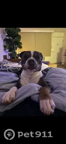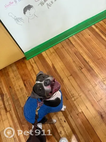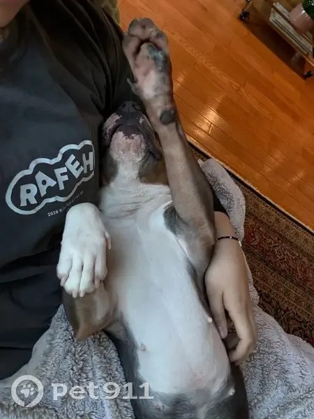 Molly (aka Miss Piggy) Grey/brown/white Pitt Terrier (3 years old) Treat motivated, not picky White belly Very friendly, may run away if she feels threatened (females or dogs may bring her closer to you)