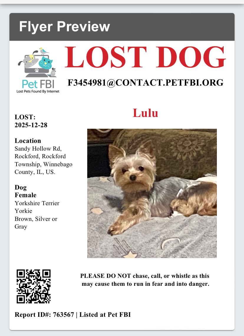 Missing dog Rockford, photo: Help Find Bella: Lost Yorkie in Rockford