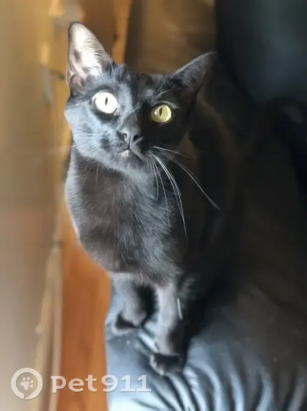 All black, skinny face, LONG tail that curls. Eyes can be yellow or green depending on lighting. Indoor only and skittish. Expert hider, only other time he slipped out he hid in a neighbors garage for 3 days. Check sheds and garages!
