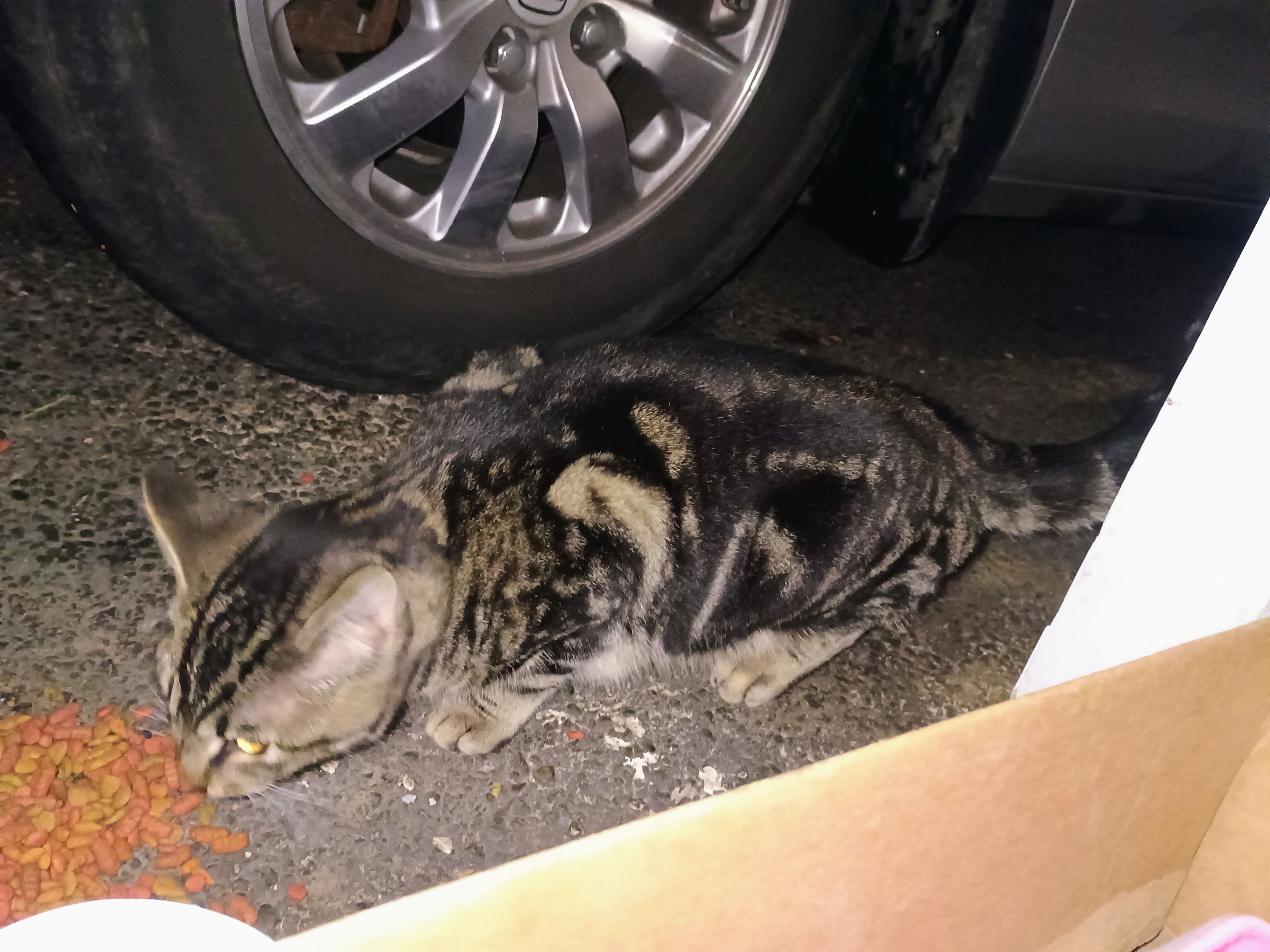 This sweet scared cold hungry kitty came into my mom's carport Jan 4th. I'm posting what photos I could get in hopes of locating his owner. Gave him food and water and a bed to get out of the weather but I think he wants to go home. He's friendly but cautious. If hes yours hes been hanging out here in senior estates trailer park most of the time