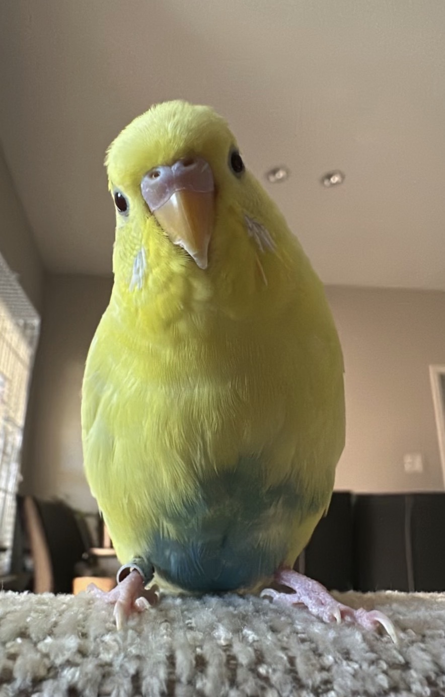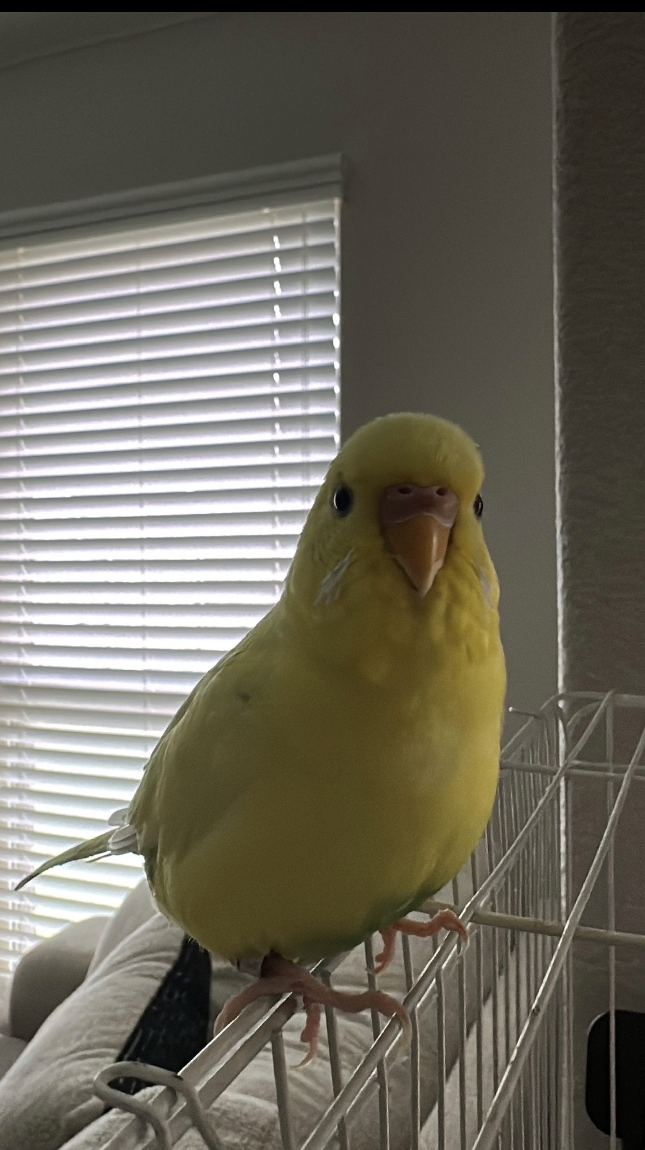 Bright Yellow Budgie Parakeet with Blue Underbelly, Silver Band on right leg, she flew out the backyard in the rain, must’ve hidden somewhere not far from the area, bushes, trees, cracks/corners Crossroads: Jayden Ln, Trinity Ln, Serenity Ave, Colby Ln, Megan Ct, Debby Ct, Spencer Ln, and forests neighboring the area