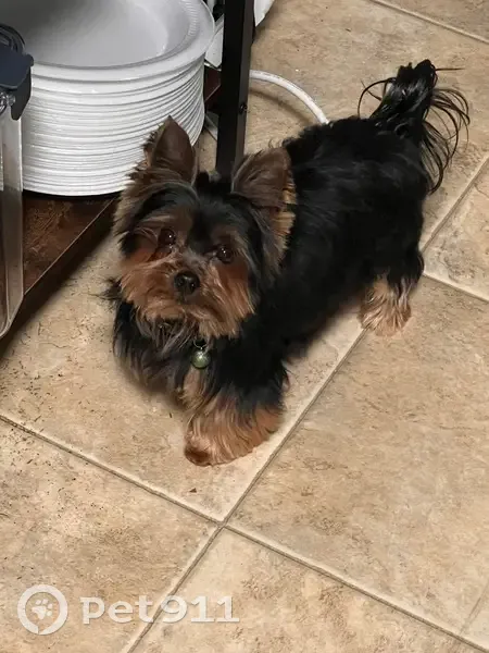 Benji is a six-year-old toy Yorkie, he's 4 pounds about, black and brown fur, missing a front bottom tooth. Very friendly and loves to smile when in a comfortable environment.