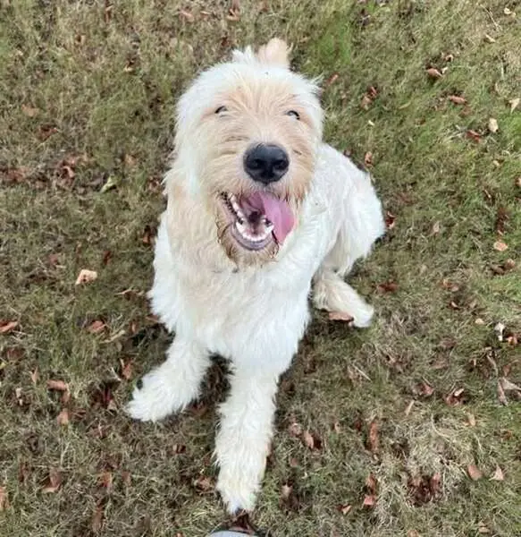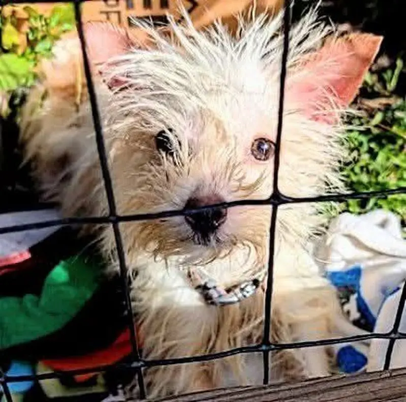 His name is Toby, he has spots on his tongue, he mostly understands Spanish, he’s a mediumish dog that weighs around 10-15 pounds he has curly/wavy hair and it’s a goldish color and he’s 7 months old